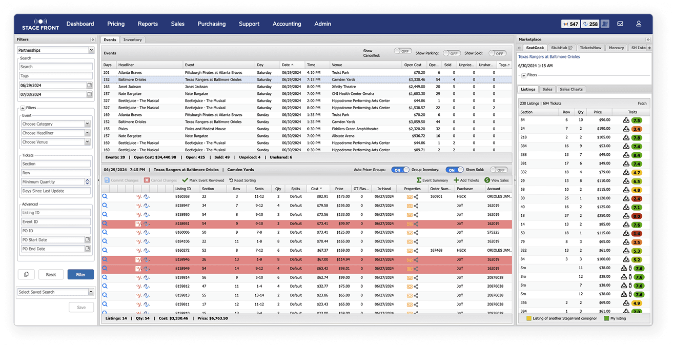 Stage Front Portal is a live operational platform used by ticket brokers across the U.S. to manage inventory, pricing, and marketplace distribution, processing $300M+ GMV annually. Originally built in 2011 it had grown over two decades into a system of 120+ features that brokers depended on daily to make fast, high-stakes pricing decisions.